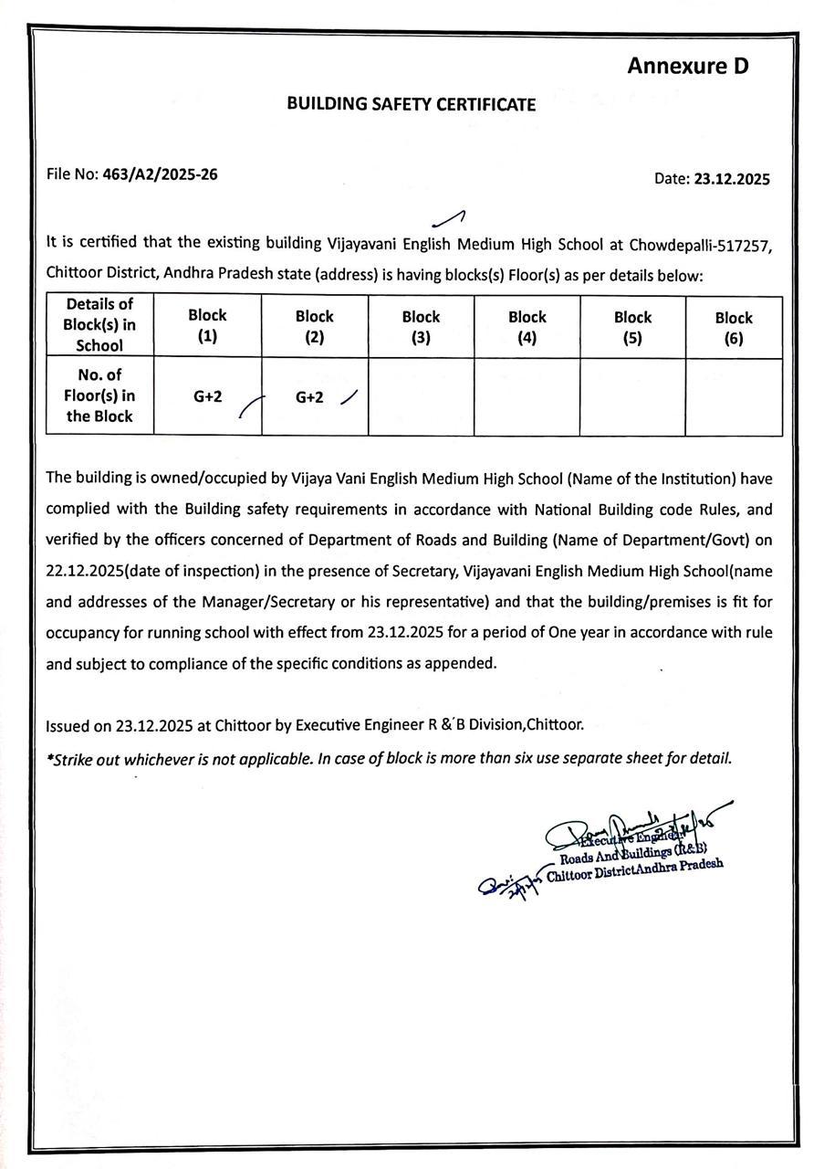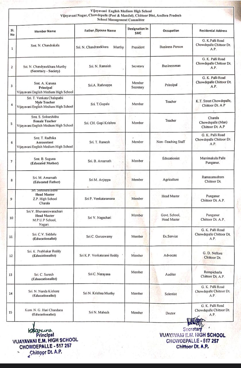 Vijayavani Nagar, Punganur Main Road, Chowdepalli, Chittoor Dist, India – 517167